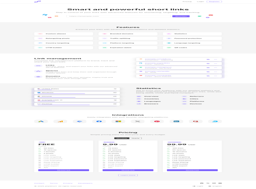 phpShort is a powerful URL shortener software to create, target, and track fully branded links using custom domains, retargeting pixels, and advanced analytics.